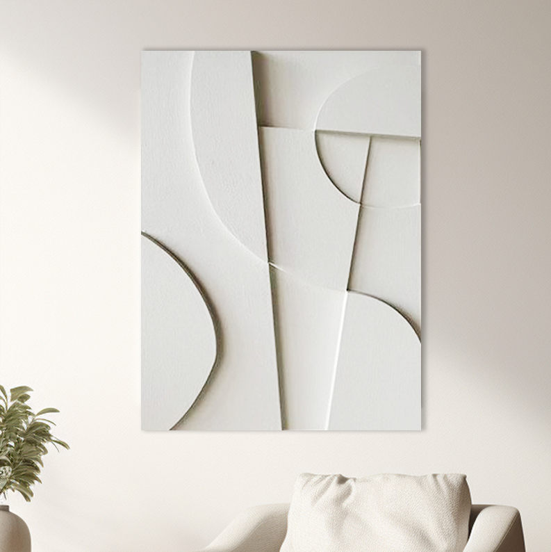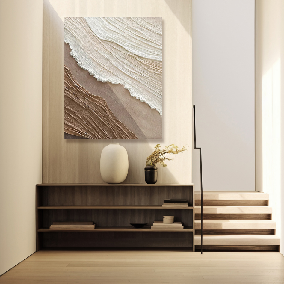 Однотонные фактурные работы акцентируют на себе внимание не за счет цвета, а за счет формы. Такие картины невероятно тактильны и скульптурны, и хорошо подходят для интерьеров, где важна атмосфера спокойствия и элегантности. Их часто выбирают ценители минимализма, стиля сканди и дзен-эстетики.