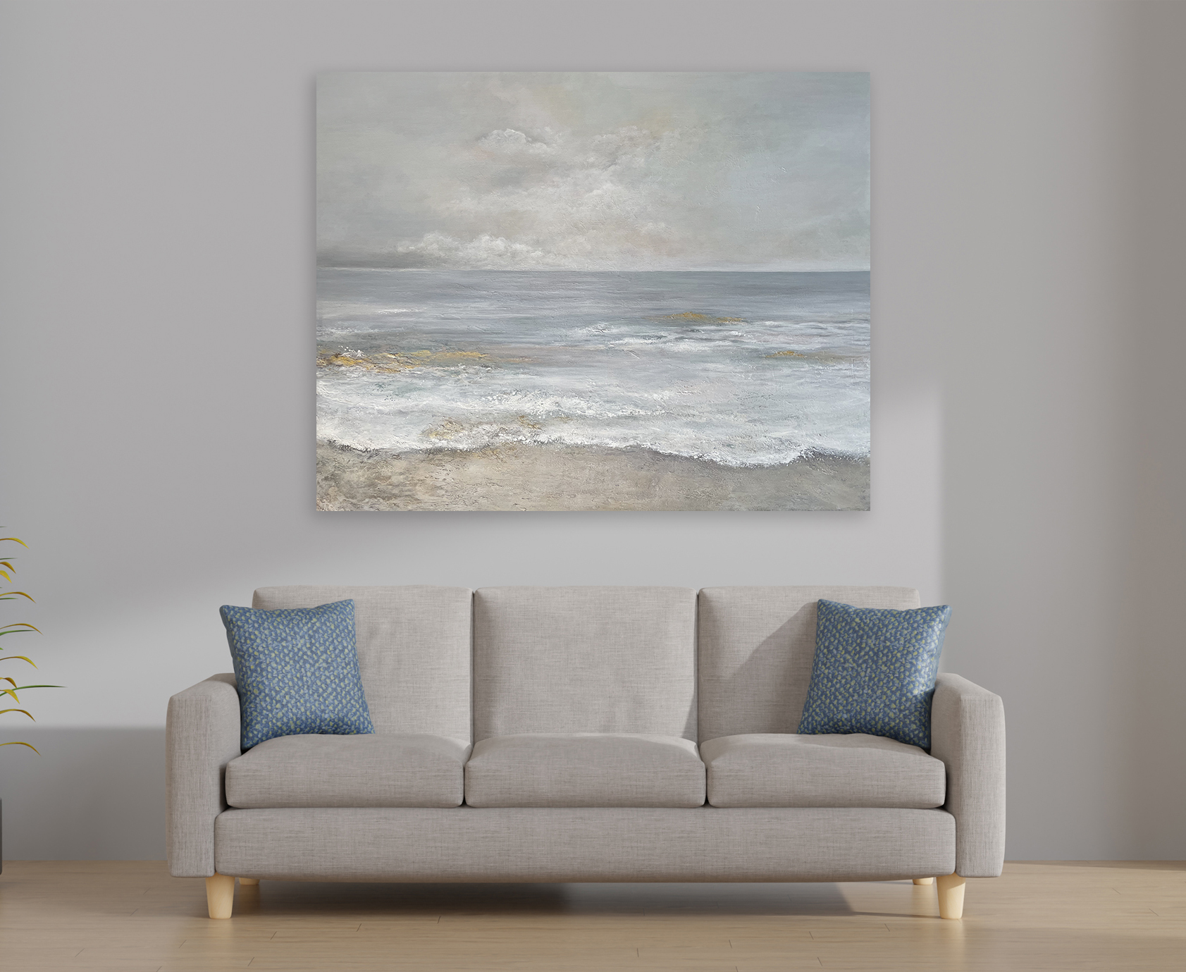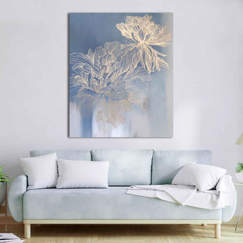 Касательно размеров и пропорций: над диваном или кроватью — ширина картины должна быть не менее 2/3 длины мебели, а в узком коридоре лучше работают вертикальные форматы.